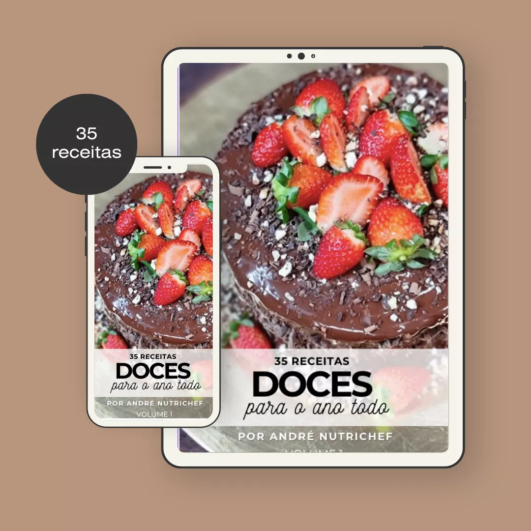 No E-book Doces para o ano todo, as receitas são adoçadas de forma natural ou com mínimo de açúcar mais saudáveis, adoçante natural que não estufa, frutas e te ensino também sobre adoçadores líquidos como maple.