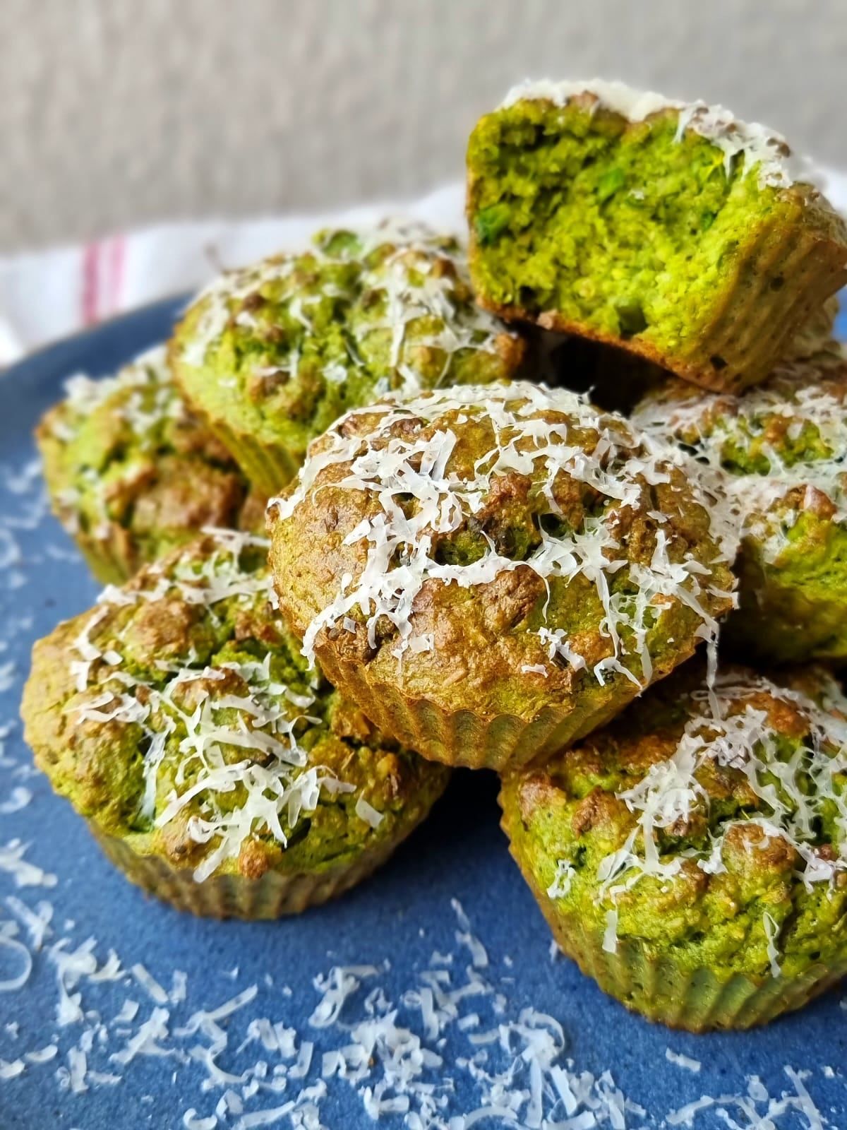 Muffin proteico de frango e abóbora, pizza de brócolis, waffle salgado