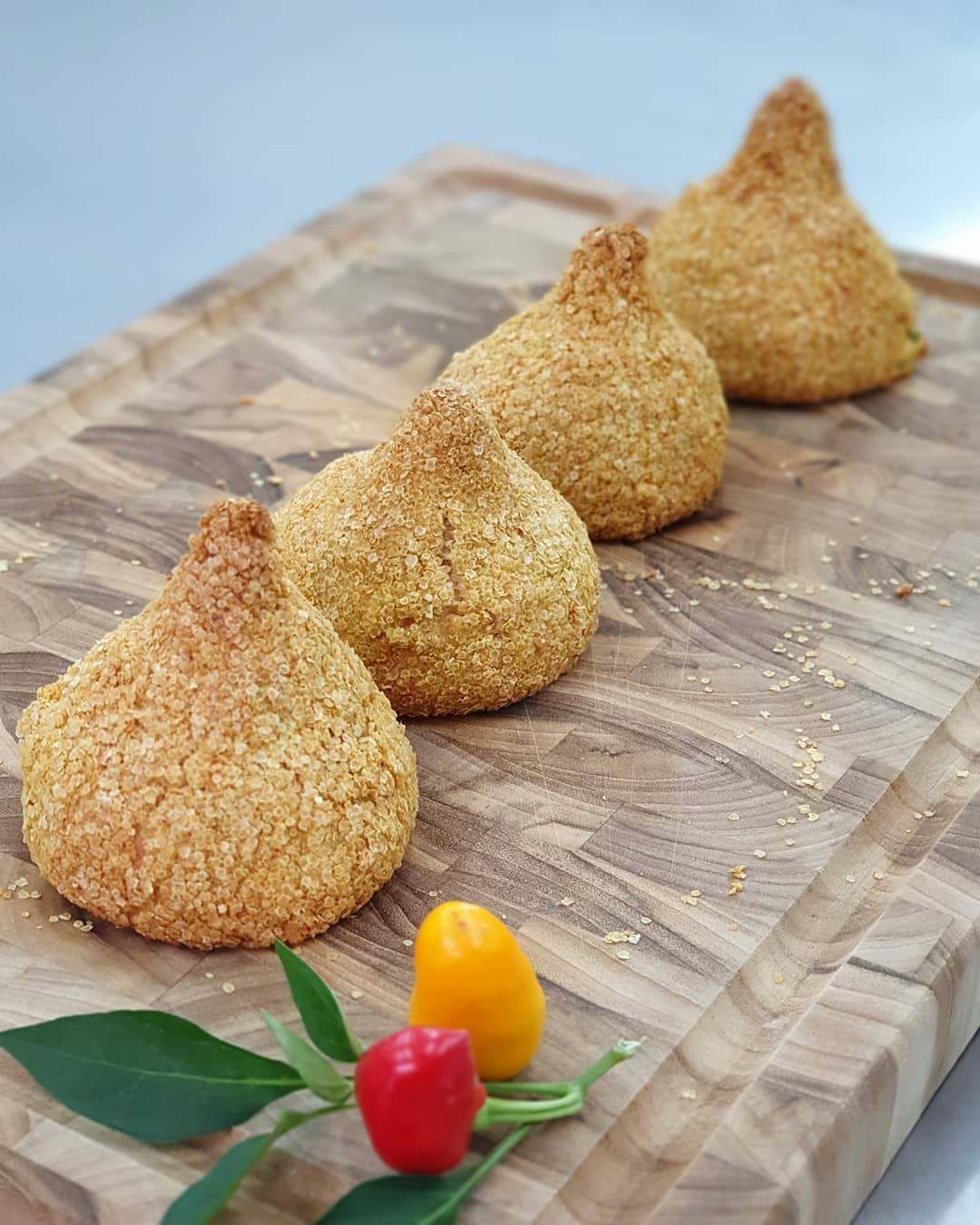 Bolinhas de frango e aipim, coxinha proteica, muffin proteico de abobrinha e atum